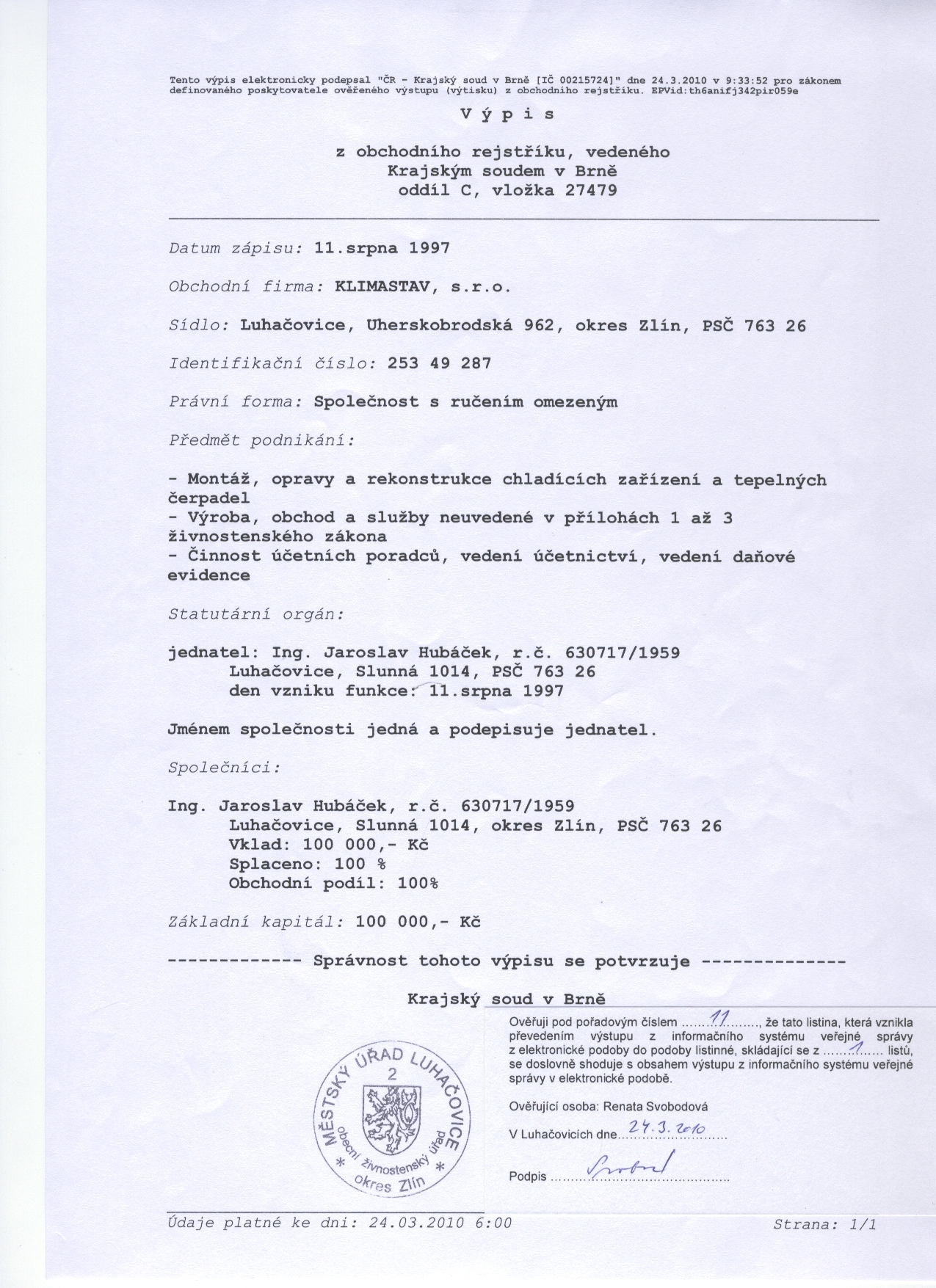 Společnost KLIMASTAV, s.r.o. byla založena v roce 1997 s hlavním sídlem v Luhačovicích jako následovník sdružení TECHNIC clima se vznikem své činnosti v roce 1991.